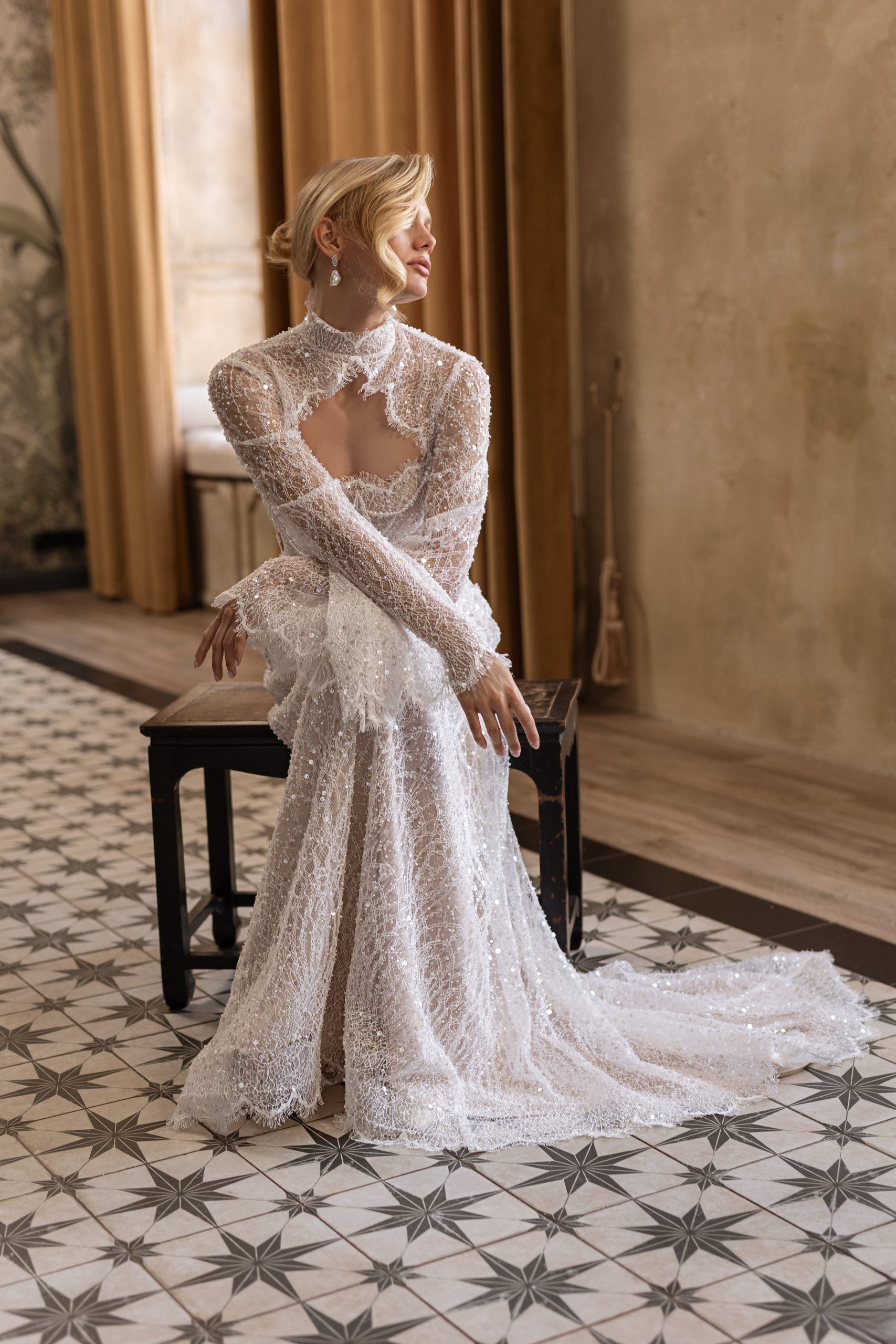 Принцесса, Пышное, Длинное, Без рукавов, С декольте, Со шлейфом