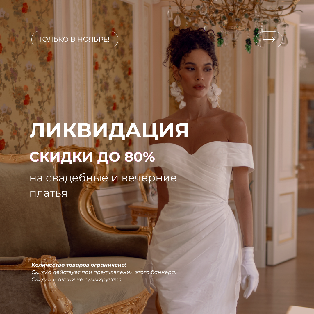1. Ликвидация свадебных и вечерних платьев — скидки до 80%