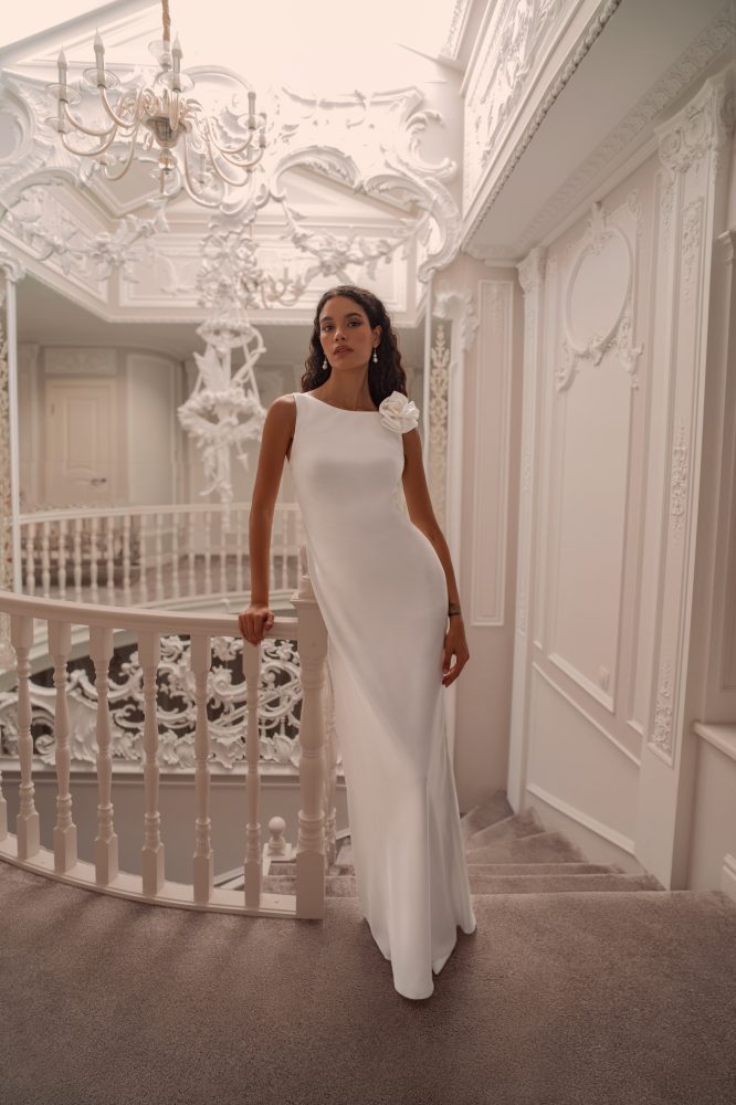 Такое свадебное платье подойдет как для классической свадьбы, так и для торжества в стиле модерн или минимализм.