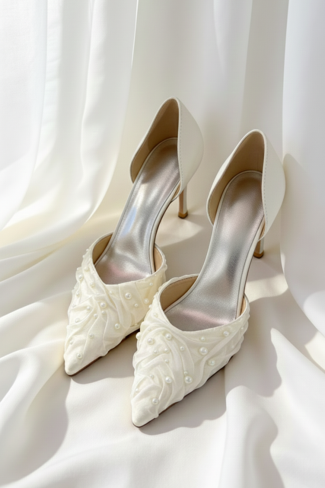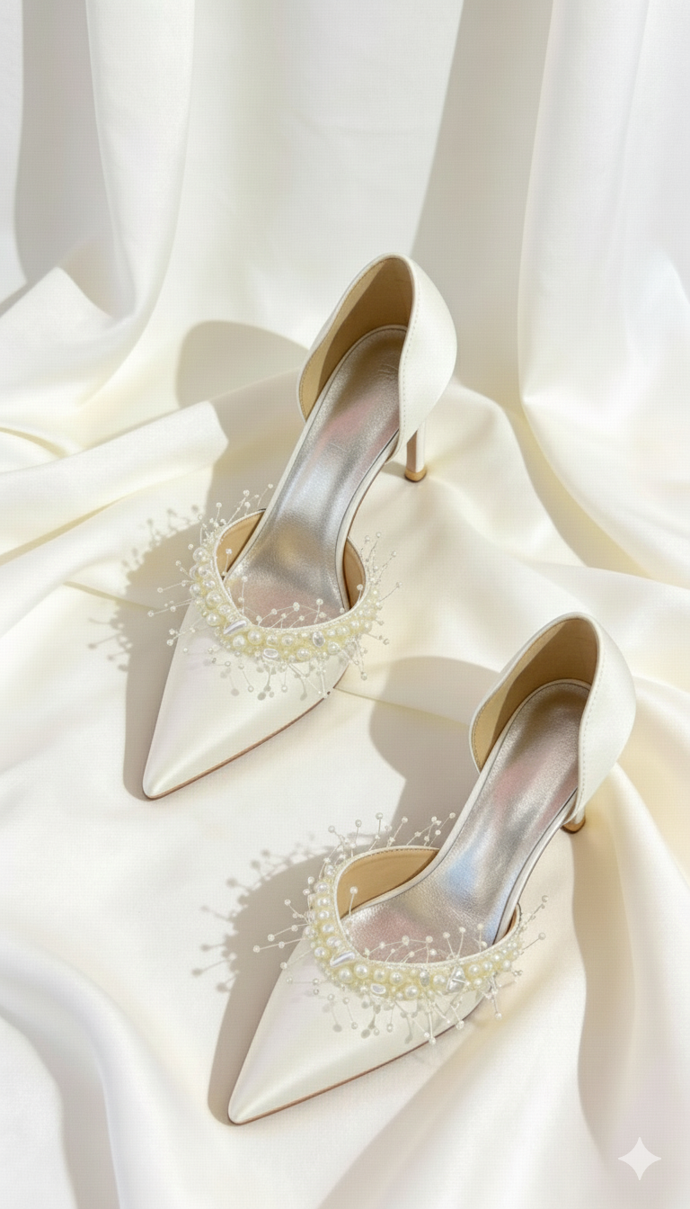 Нежные туфли с изящным декором из бисера и жемчужных элементов создают ощущение лёгкости и утончённого блеска. Акцентная отделка смотрится воздушно и деликатно, красиво дополняя светлый, собранный силуэт модели. Каблук аккуратный и устойчивый — для уверенности в каждом шаге.