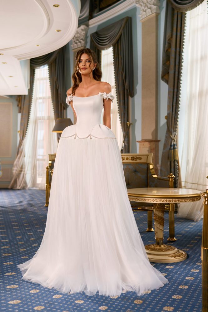Это свадебное платье подойдет для тех, кто мечтает о сказочной свадьбе в стиле принцессы. Оно идеально подойдет для свадьбы на природе или в роскошном зале.