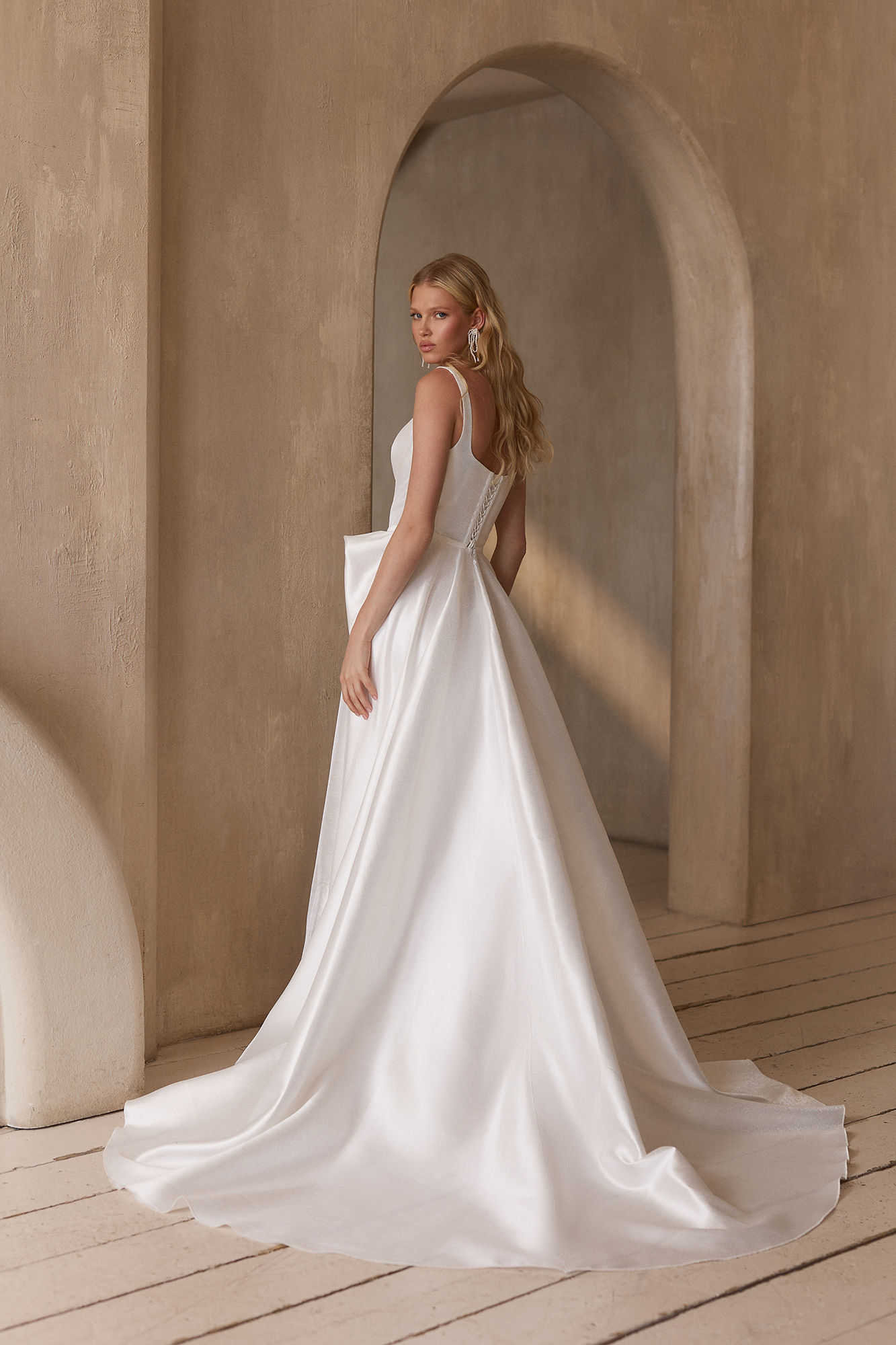Платье, которое влюбляет в простоту. Нежный блеск ткани, изящный вырез и идеальный крой. Лалуна — для тех, кто выбирает чистоту линий и лёгкость движений. Без лишнего декора, но с безупречным акцентом на фигуру. Это платье будто шёпотом говорит: «всё внимание — на тебя».