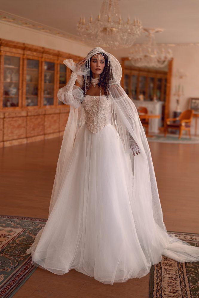Это платье будто соткано из света и музыки момента — для самой чувственной «да» в жизни.