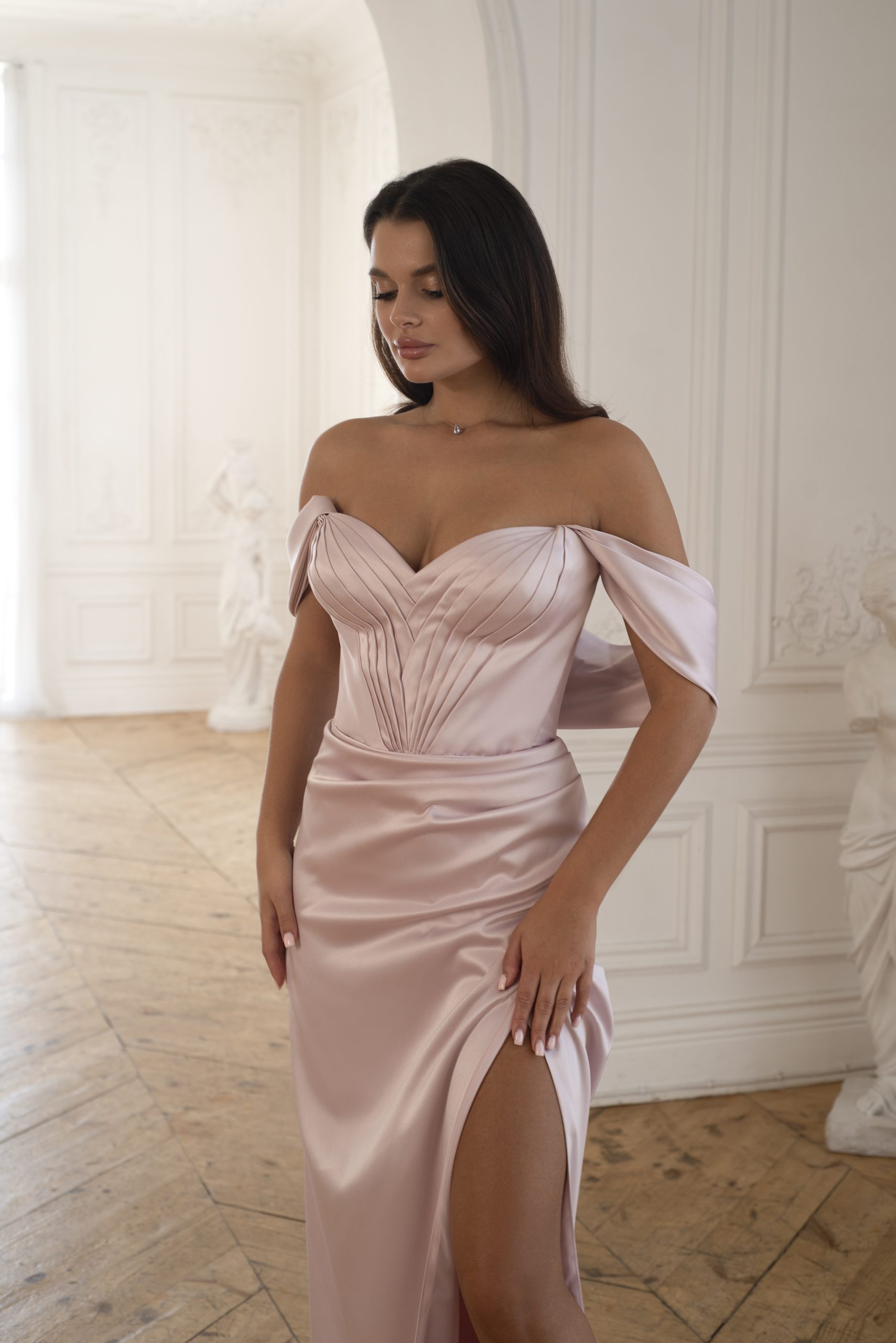 Минималистичное вечернее платье, выполненное в прямом крое. Шарм и кинематографичность данной модели достойны места на самых пафосных голливудских дорожках.