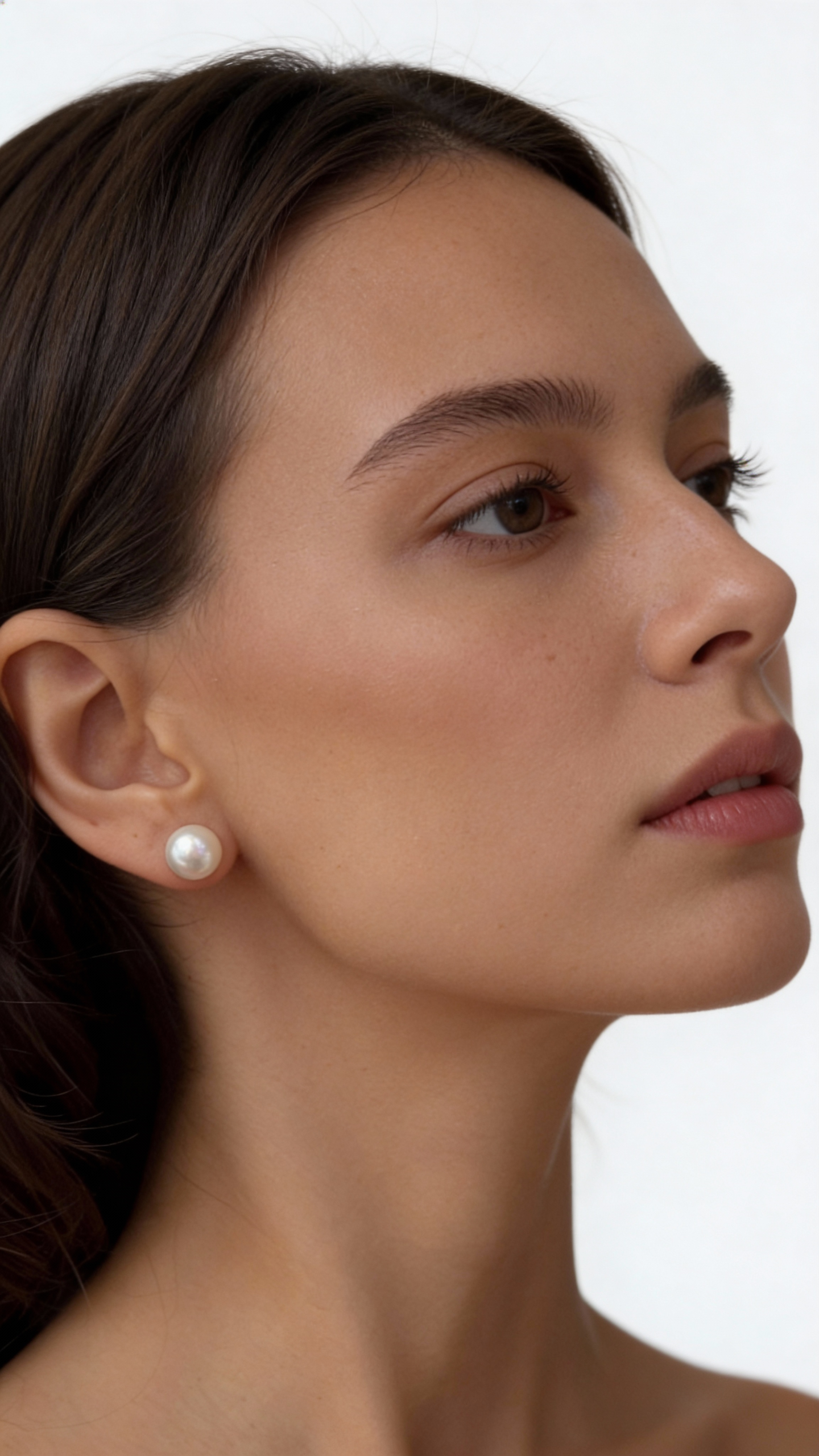 Минималистичные серьги-пусеты с жемчугом — аккуратный акцент, который подчёркивает черты лица и добавляет образу мягкое свечение. Жемчуг выглядит деликатно и благородно, создавая ощущение собранности и лёгкой элегантности.