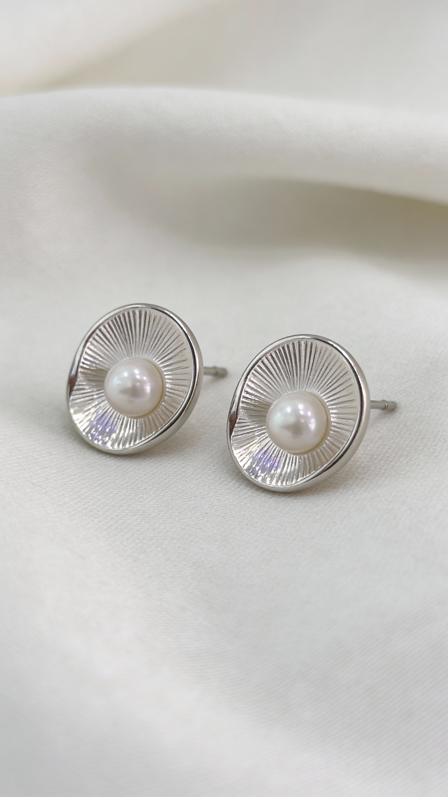 Круглые серьги с жемчугом и рельефным металлом — выразительный, но неброский акцент. Жемчужина находится в центре фактурной оправы, за счёт чего украшение красиво ловит свет и подчёркивает линию лица.