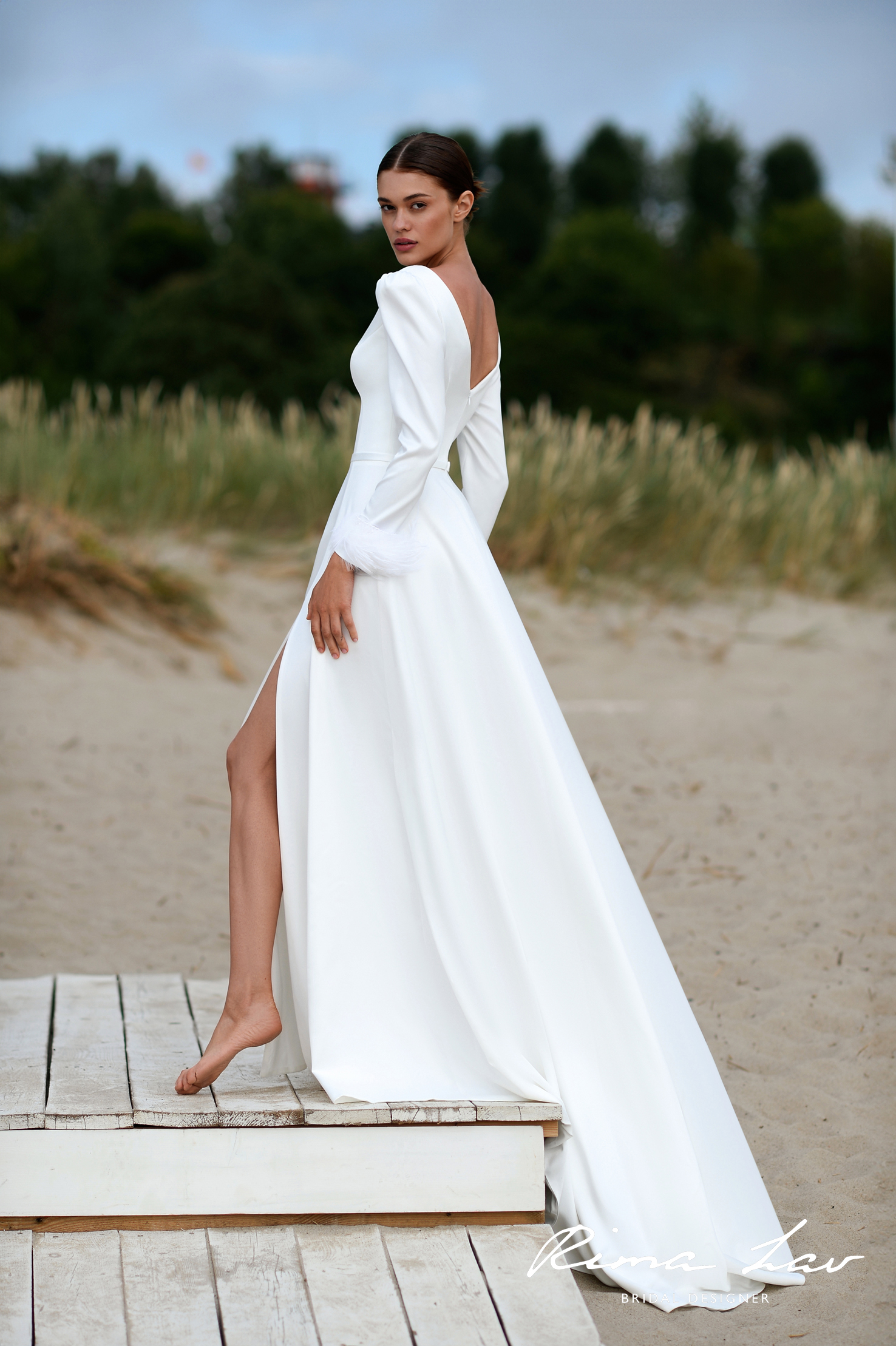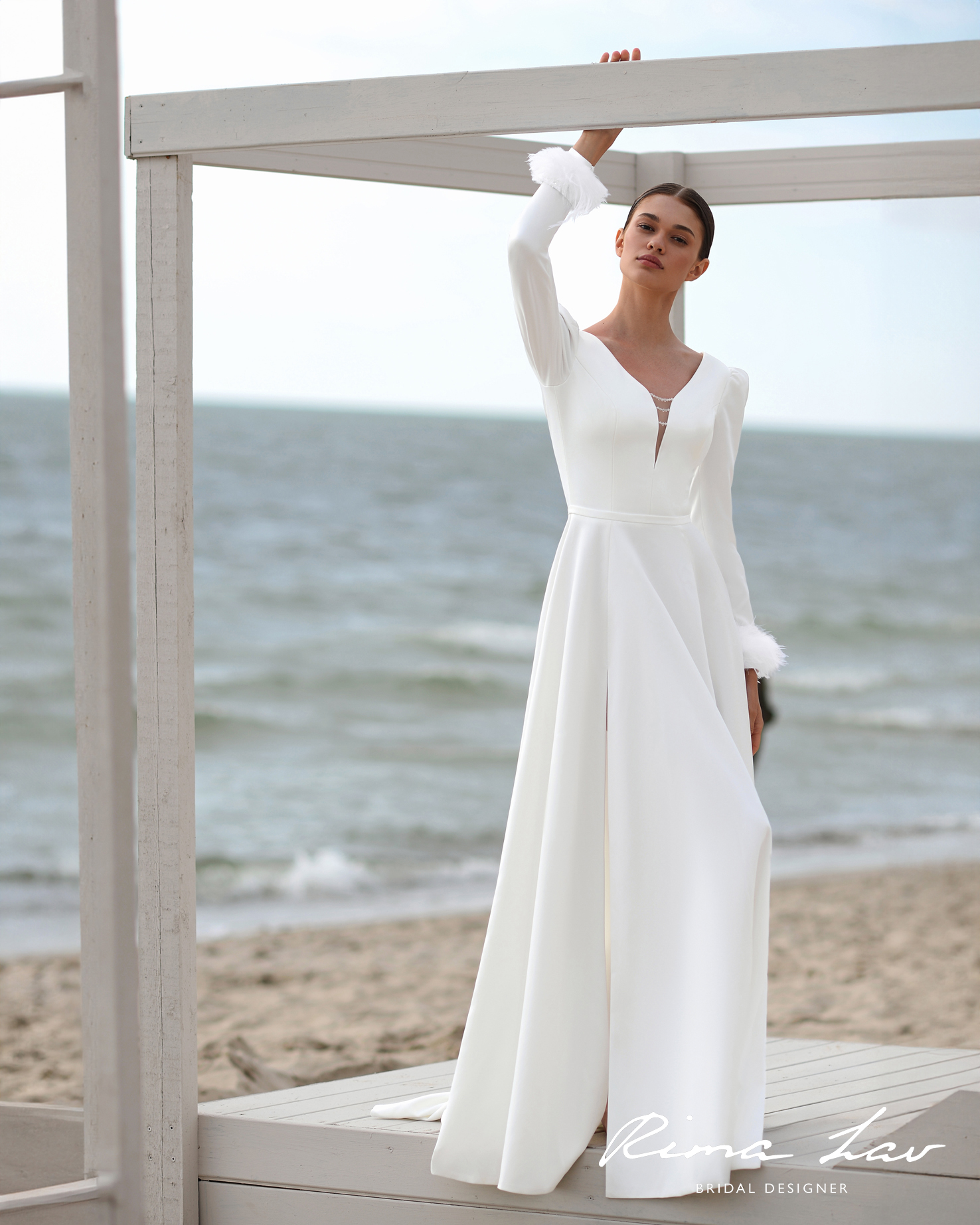 Монохромный дизайн платья смотрится максимально стильно, придавая образу невесты нотку благородного шарма